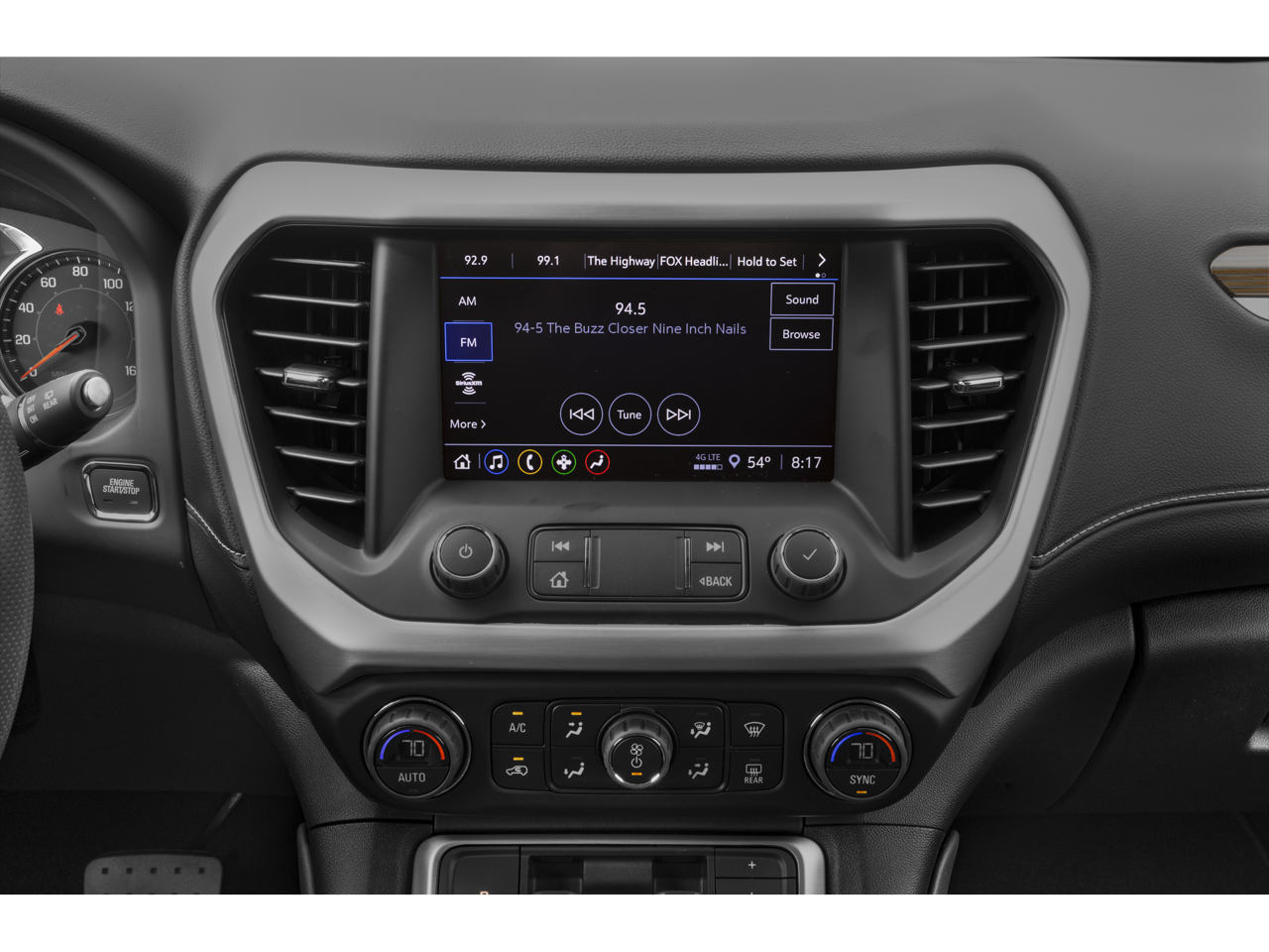 - Audio system, 8" diagonal GMC Infotainment System with Navigation includes multi-touch display, AM/FM/SiriusXM stereo, Bluetooth streaming audio for music and most phones, Android Auto and Apple CarPlay capability for compatible phones, advanced voice recognition, in-vehicle apps, personalized profiles for infotainment and vehicle settings